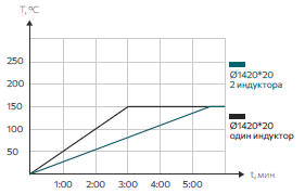| Данные, отображаемые на графиках, являются примерными. Более точную информацию мы можем предоставить после выявления индивидуальных параметров, влияющих на время нагрева и область применения. | ||