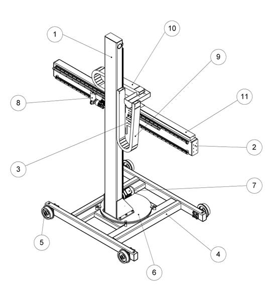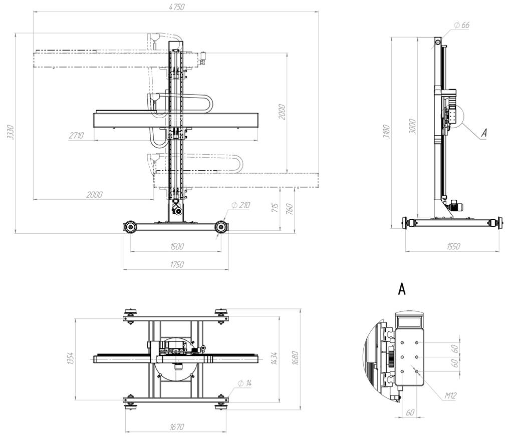 Металлоконструкции колонны изготовлены из высокопрочной стали. Профильные направляющие обеспечивают надёжность работы конструкции при линейных перемещениях. Сварочная головка устанавливается на конец балки, которая в свою очередь установлена на каретке. Перемещения по вертикальному и горизонтальному направлениям производятся при помощи электроприводов (при необходимости особо точного позиционирования головки – по спец.заказу – используются сервоприводы). |