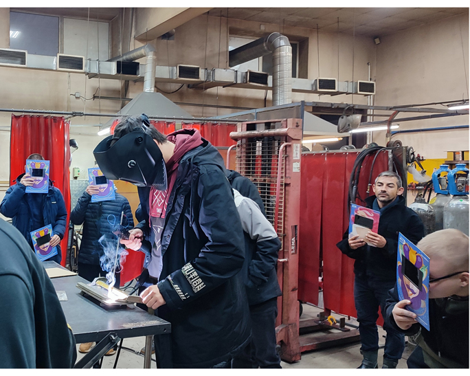 Программа включала в себя ознакомительную экскурсию по производственным цехам и складским помещениям, интерактивный практикум на тренажере сварщика ДТС-03, а также общение с экспертами компании.